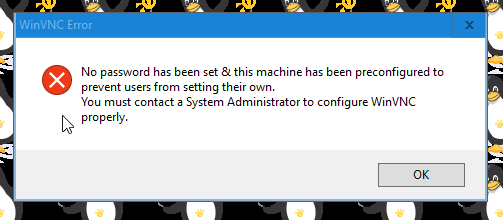 Erreur : Security failure: This server does not have a valid password enabled. Until a password is set, incoming connections cannot be accepted.