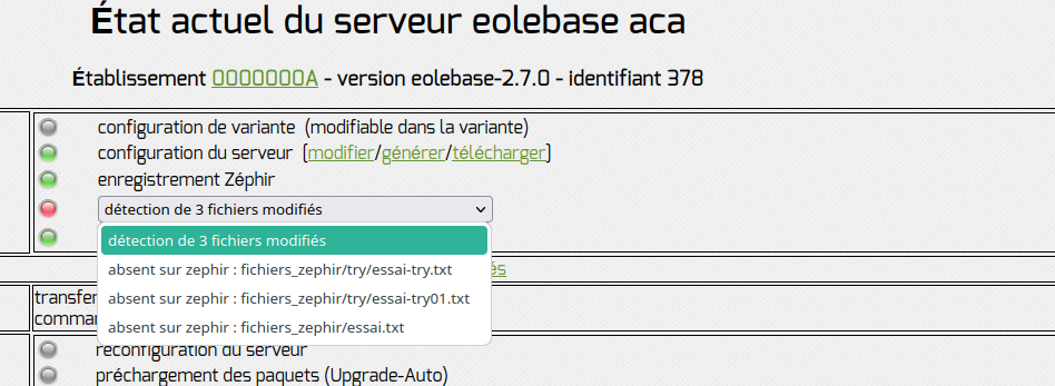 Les nouveaux fichiers doivent être identifiés dans la page d’état du serveur sur Zéphir.