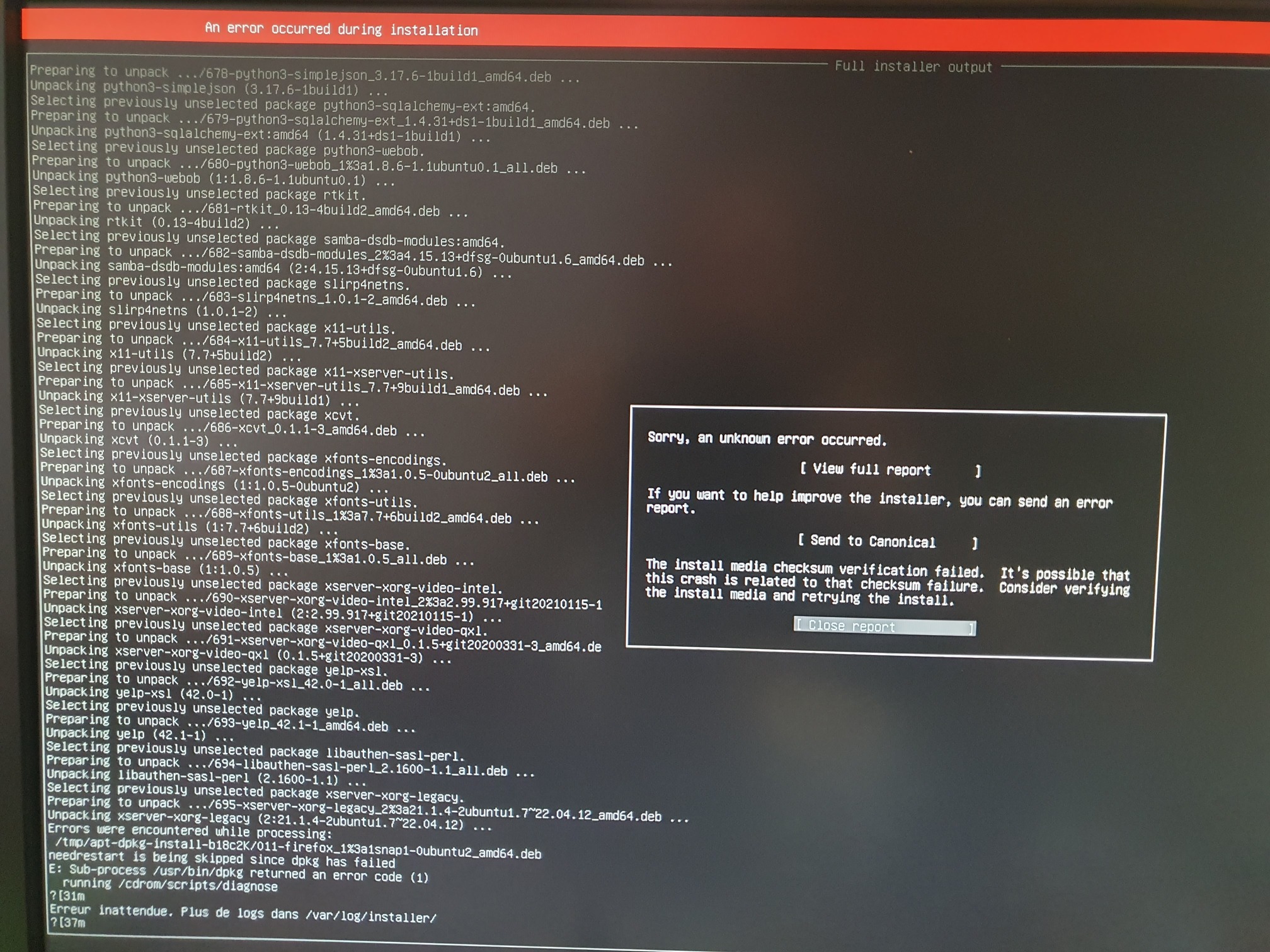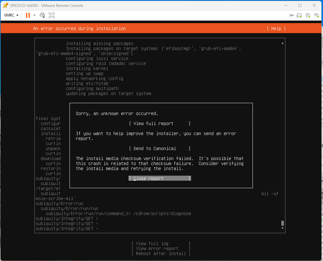 De plus, lors de l'installation depuis zero sur une VM ESXi (en vue d'une migration) se produit systématiquement l'erreur dont une capture est en PJ.