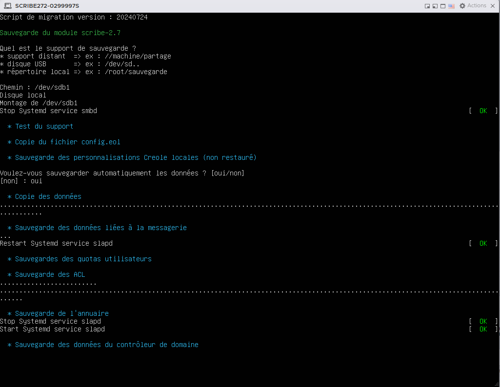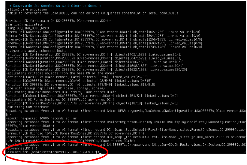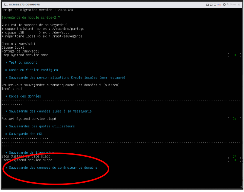 Je vous joins une capture d'écran. Le script s'arrete à l'étape "Sauvegarde des données du controleur de domaine".