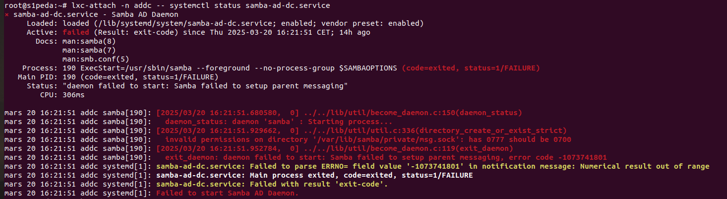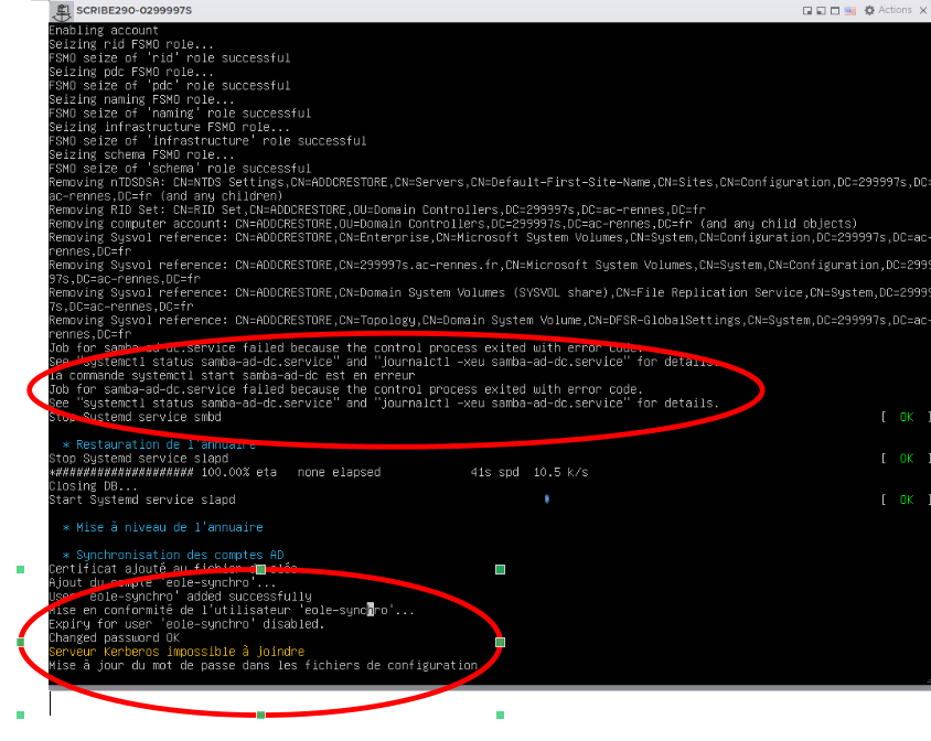Nous avons aussi constaté une erreur de redémarrage du service samba-ad-dc lors de la restauration de l'active directory.