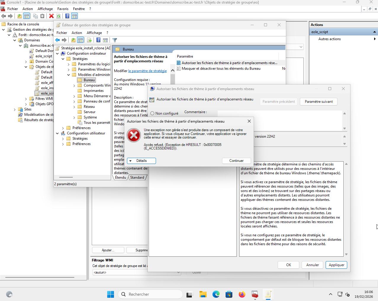 Constaté en utilisant la console MMC Windows avec les RSAT. Quand j'essaye de modifier les propriétés d'une GPO, j'ai "ACCESS DENIED".