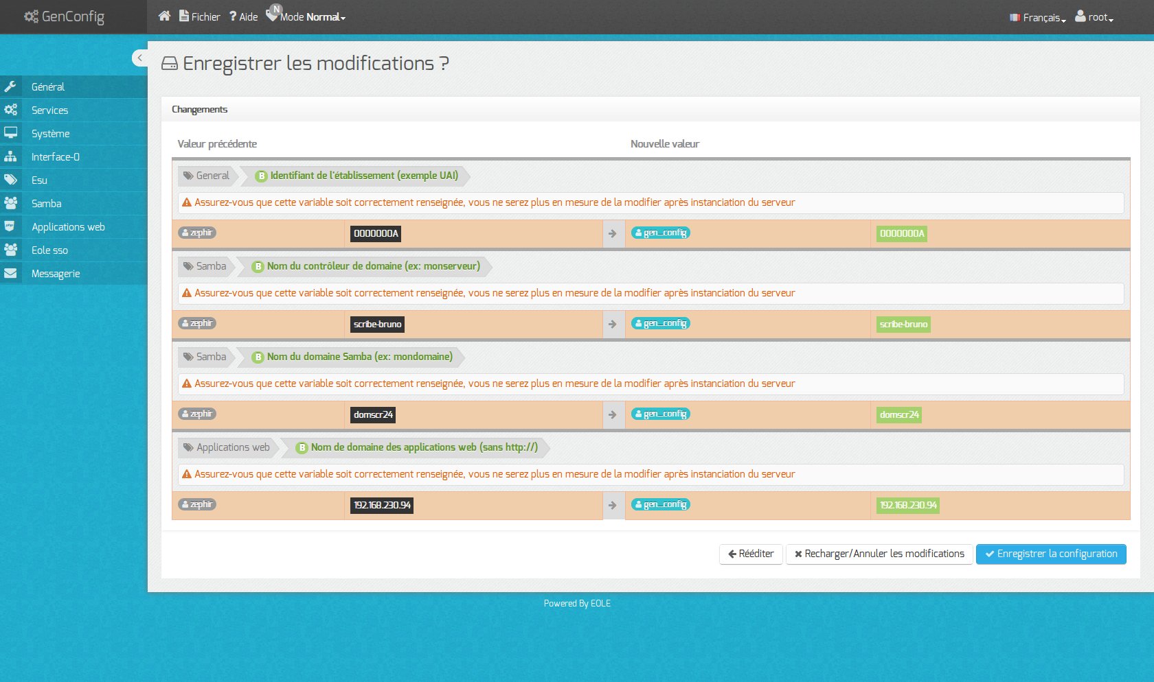 --> Le résumé indique que 3 variables ont changé de propriétaire (zephir -> gen_config)