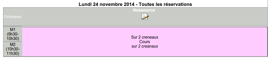 Dans le cas ou les créneaux de réservation sont basés sur des intitulés pré-définis, il est impossible d'effectuer une réservation sur plusieurs créneaux consécutifs.